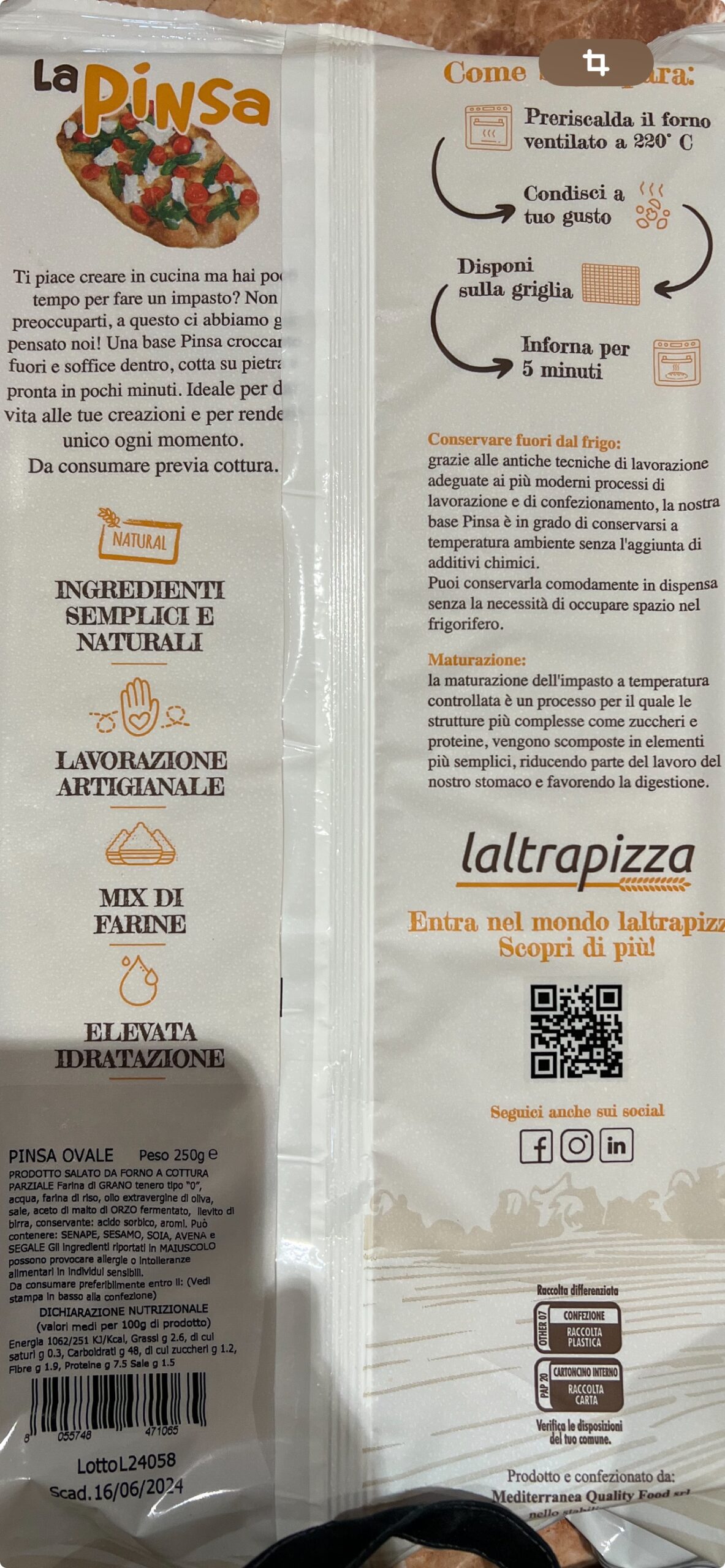 Pinsa-Basis ist einfach und schnell zuzubereiten: Ein paar Minuten im Ofen und diese leckere handgemachte Pinsa entfaltet innen ihre Weichheit, außen ihre Knusprigkeit, aber vor allem ihren intensiven und unwiderstehlichen Duft nach.